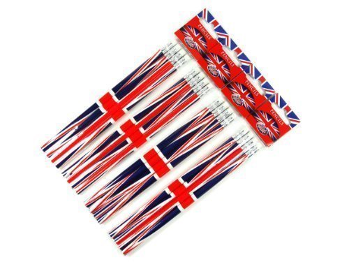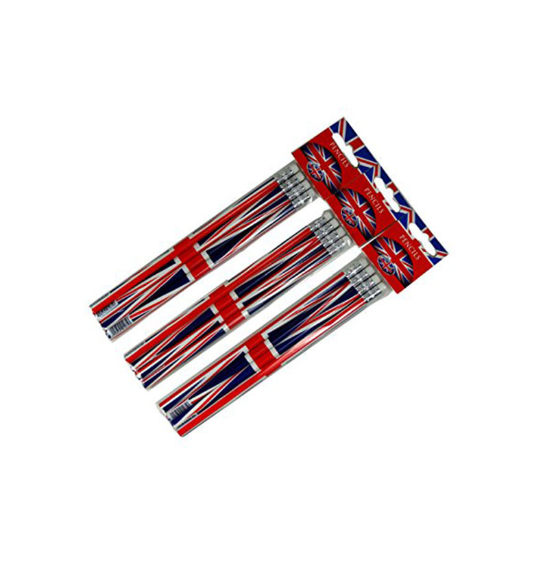 Pencil Set – Union Jack, British Souvenir Collection – 3 Packs of 4 Rubber Tipped Pencils