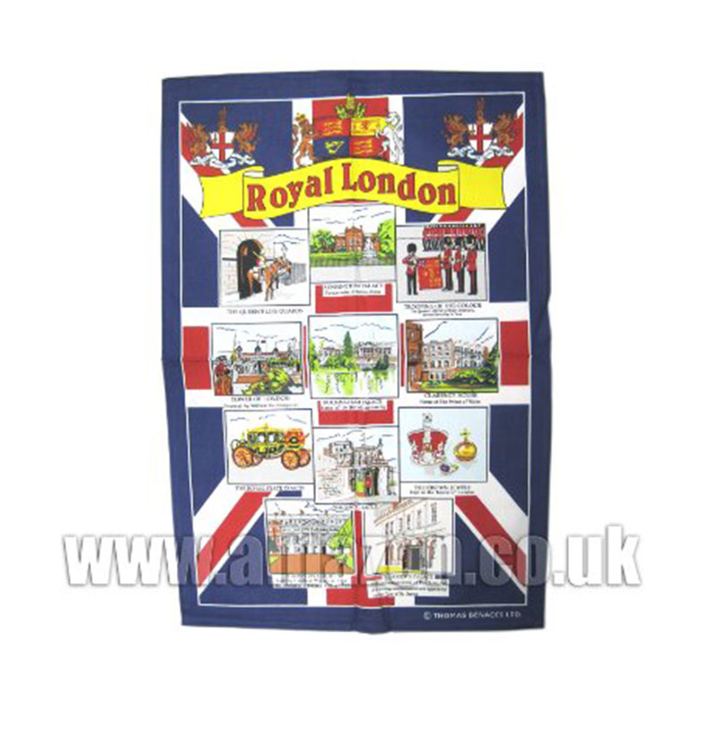 Tea Towel/ Wall Hang – Royal London, Detailing London Palaces and British Royalty, London Collectable Souvenir