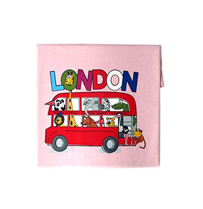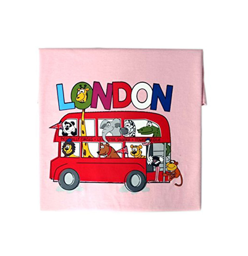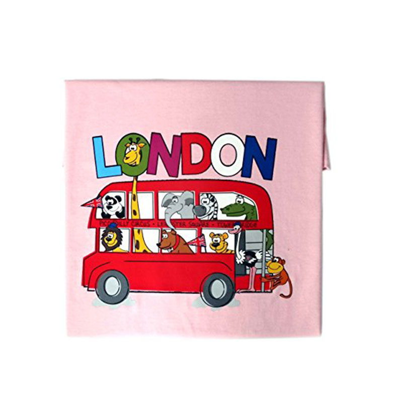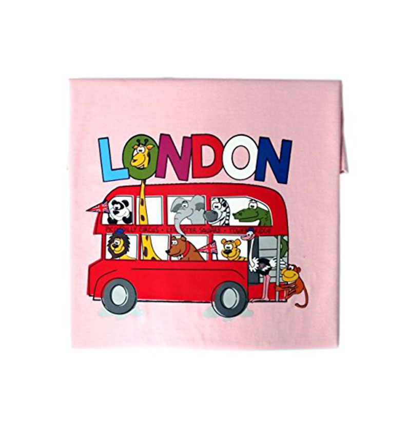 Animal Bus Children Tee Shirt, London Red Double Decker Bus and Animal Printed T-Shirt, Pink (SLC88TP) (1-2 Years)