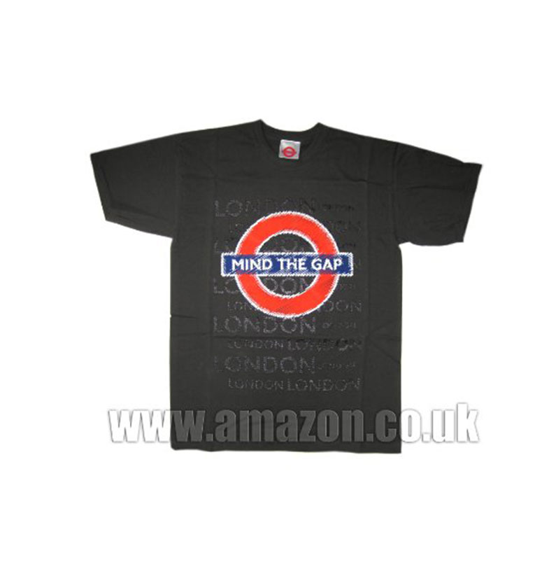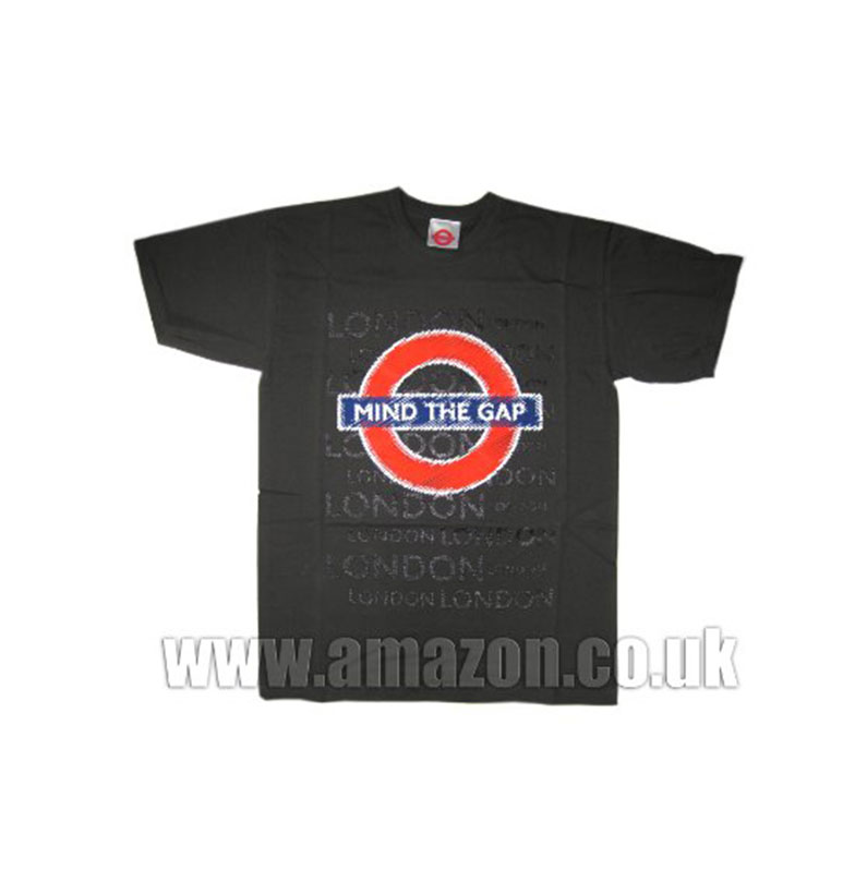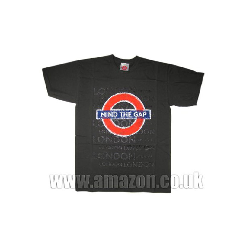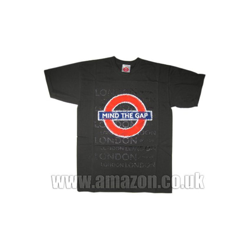 Mind The Gap Roundel Scribble and London Printed T-Shirt, Dark Grey, Transport for London Souvenir Tees (Large) – GR0086