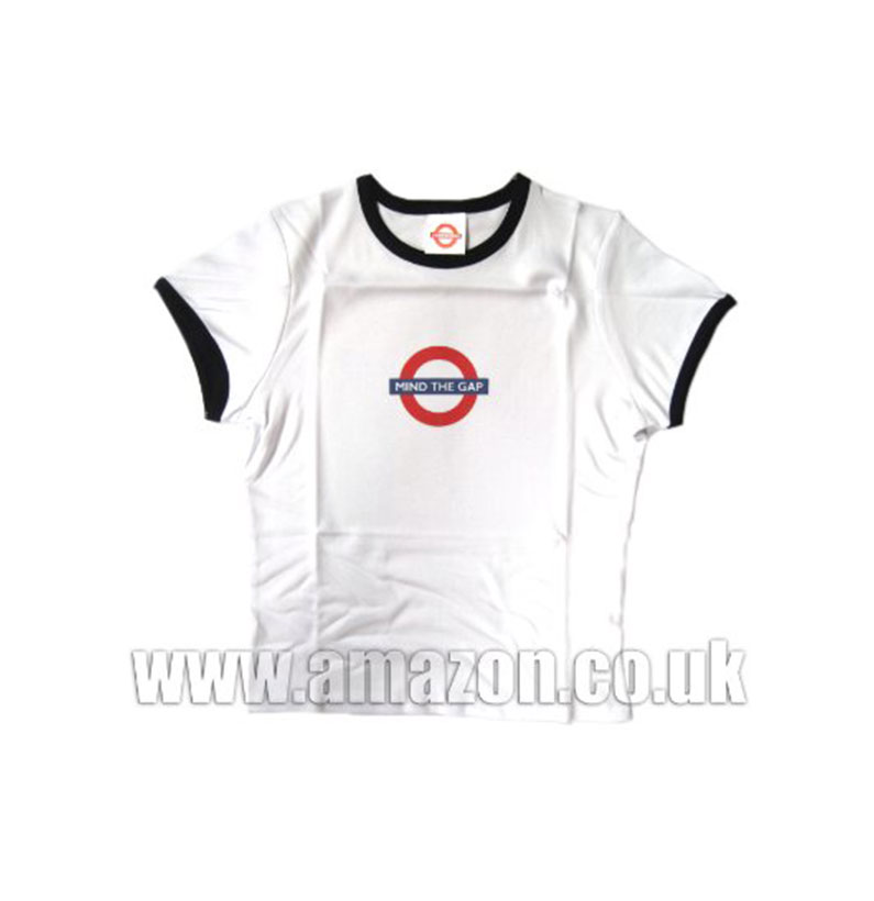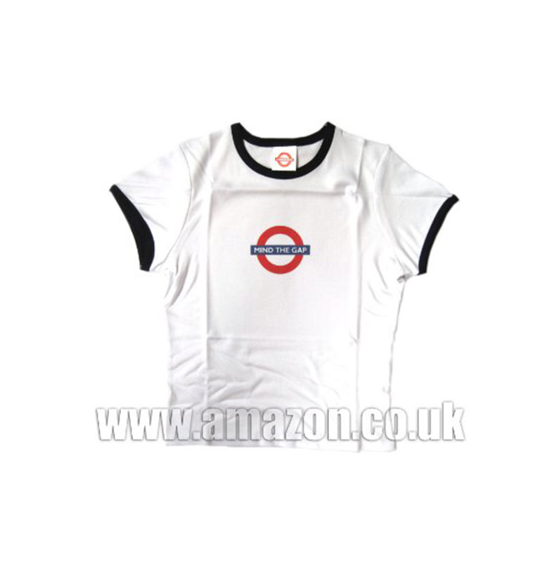 Mind The Gap Roundel Printed Skinny Fit T-Shirt, White, Transport for London Souvenir Skinny Tees (Medium -UK Size 10)