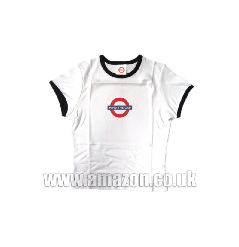 Mind The Gap Roundel Printed Skinny Fit T-Shirt, White, Transport for London Souvenir Skinny Tees (Small -UK Size 8)