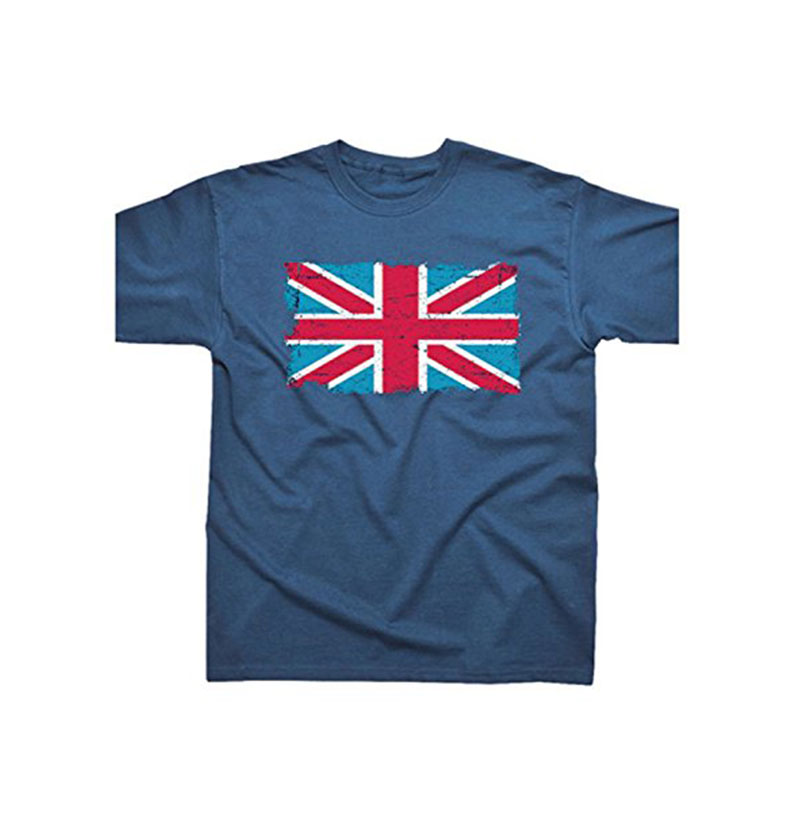 Distressed Union Jack Printed T-Shirt, Navy, British Souvenir Tee Shirt (SE325TN) (Small)