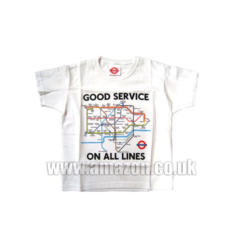 Kids Underground Tube Map Printed T-Shirt, White, Transport for London Souvenir Tees (2-4 Years) – WH0078