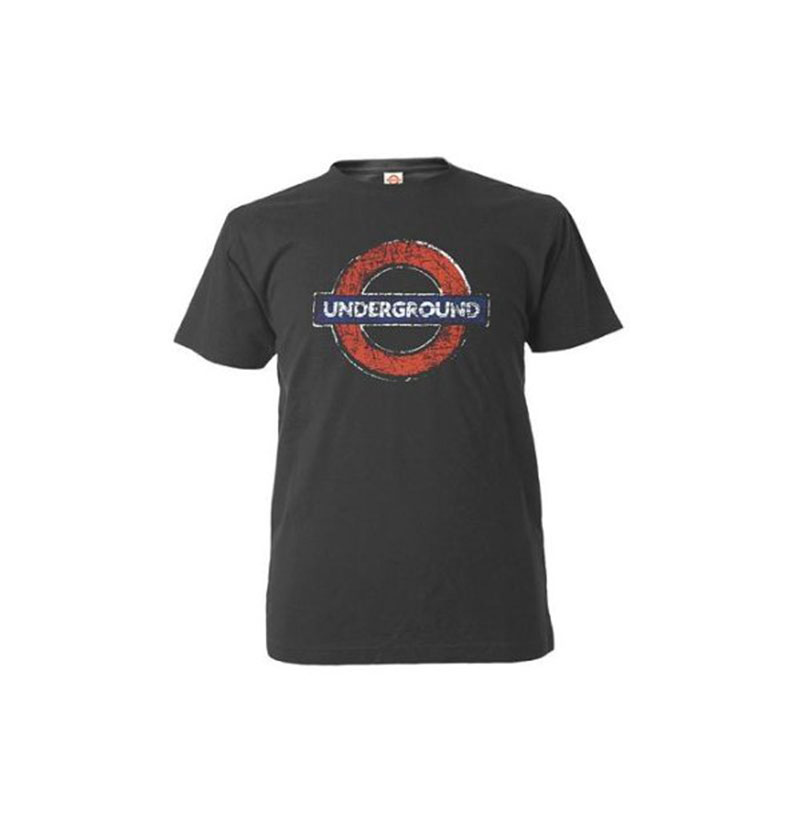 Distressed Underground Roundel Printed T-Shirt, Dark Grey, 100% Cotton. These T-Shirts are Transport for London Official Merchandises. Available Sizes: Small, Medium, Large, Extra Large and XX-Large.