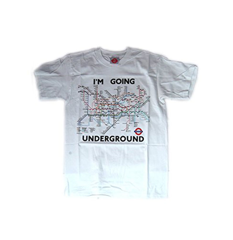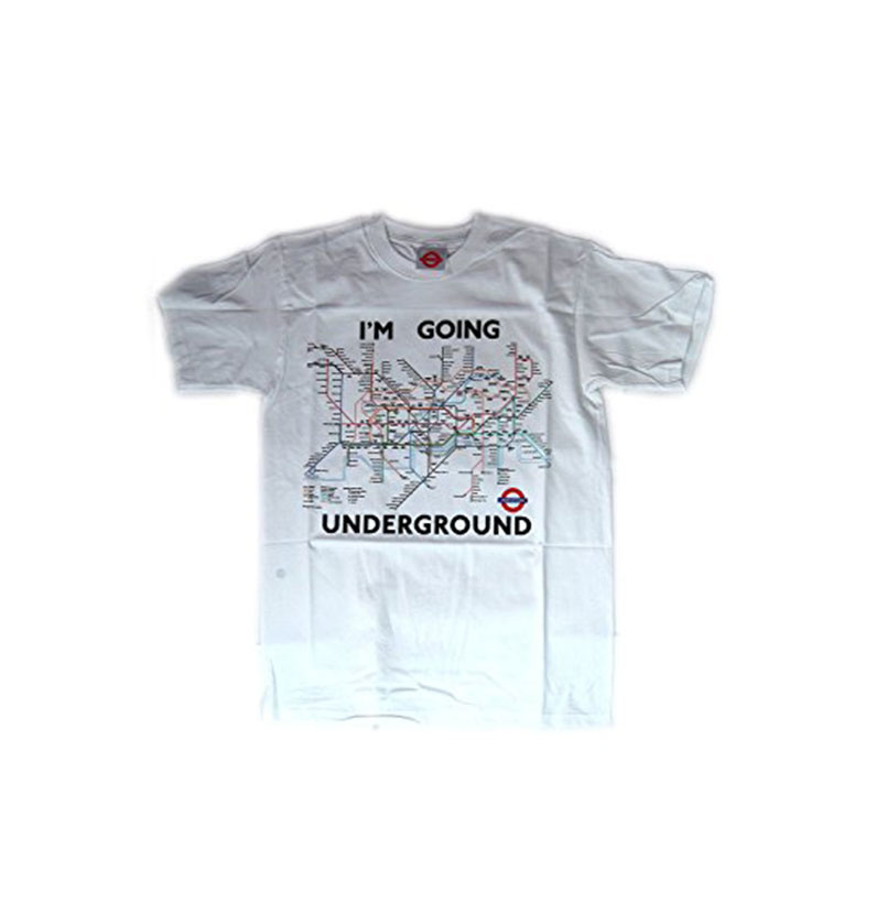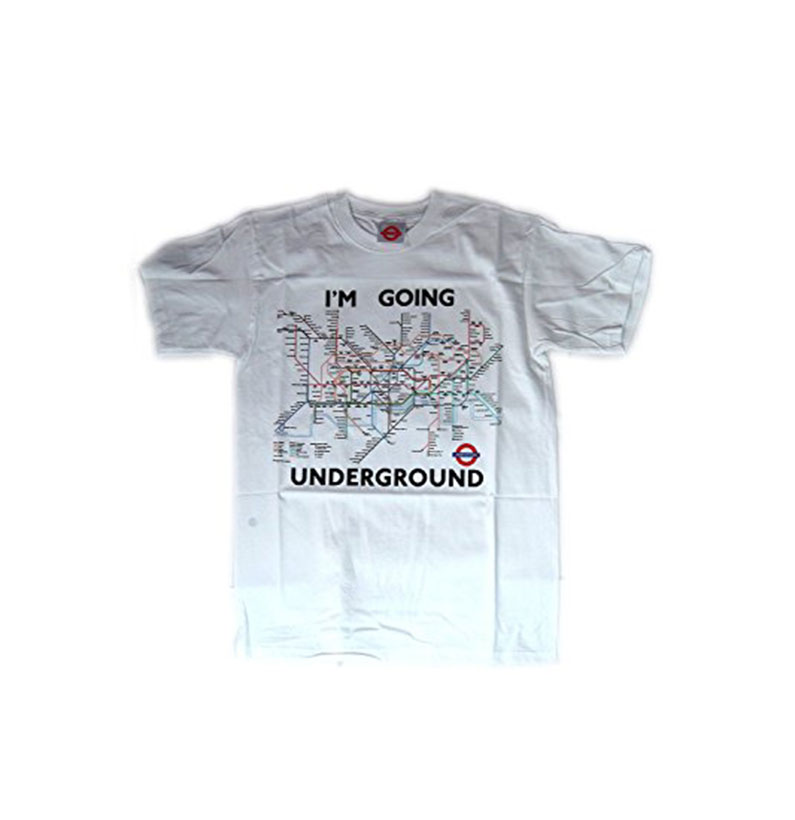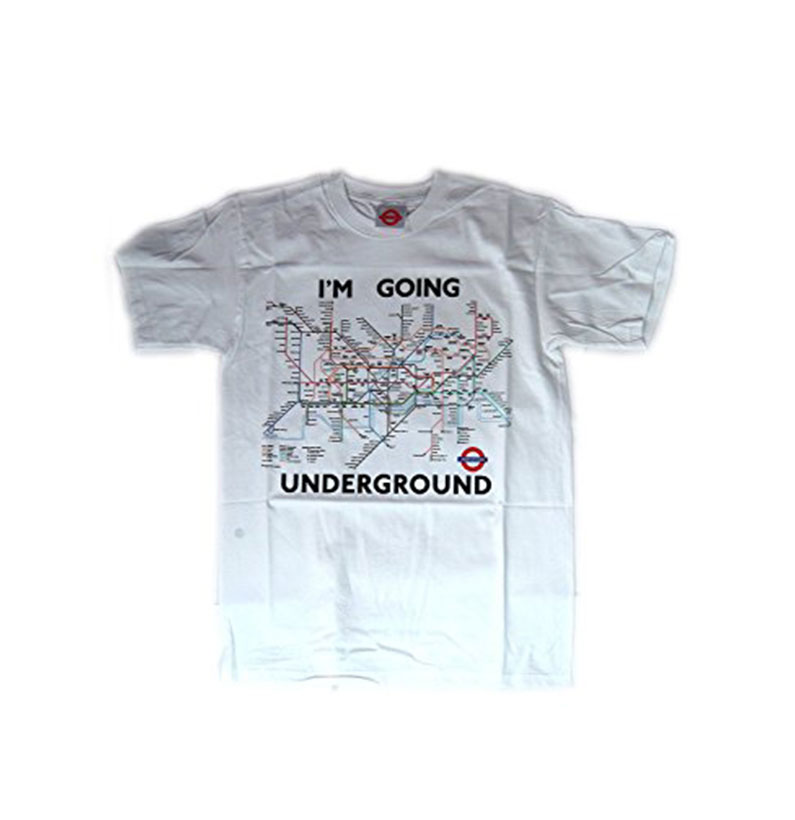 Underground Tube Map Printed T-Shirt, White, 100% Cotton. It has the slogan, ? I?M GOING UNDERGROUND?.These T-Shirts are Transport for London Official Merchandises. Available Sizes: Small, Medium, Large, Extra Large and XX-Large.