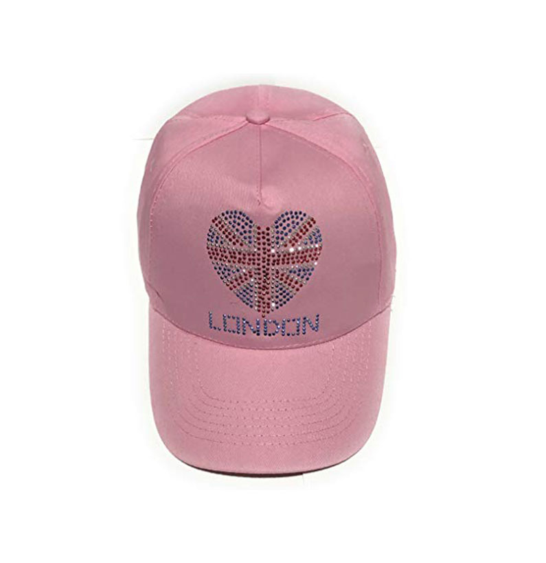 A baseball cap with Union Jack, i.e A Heart Shaped Union Jack Diamante work on the front. Made of 100% Cotton. Very attractive and nicely made. Please note it come in one size only, and would fit to most since it has an adjustable strap at the back.