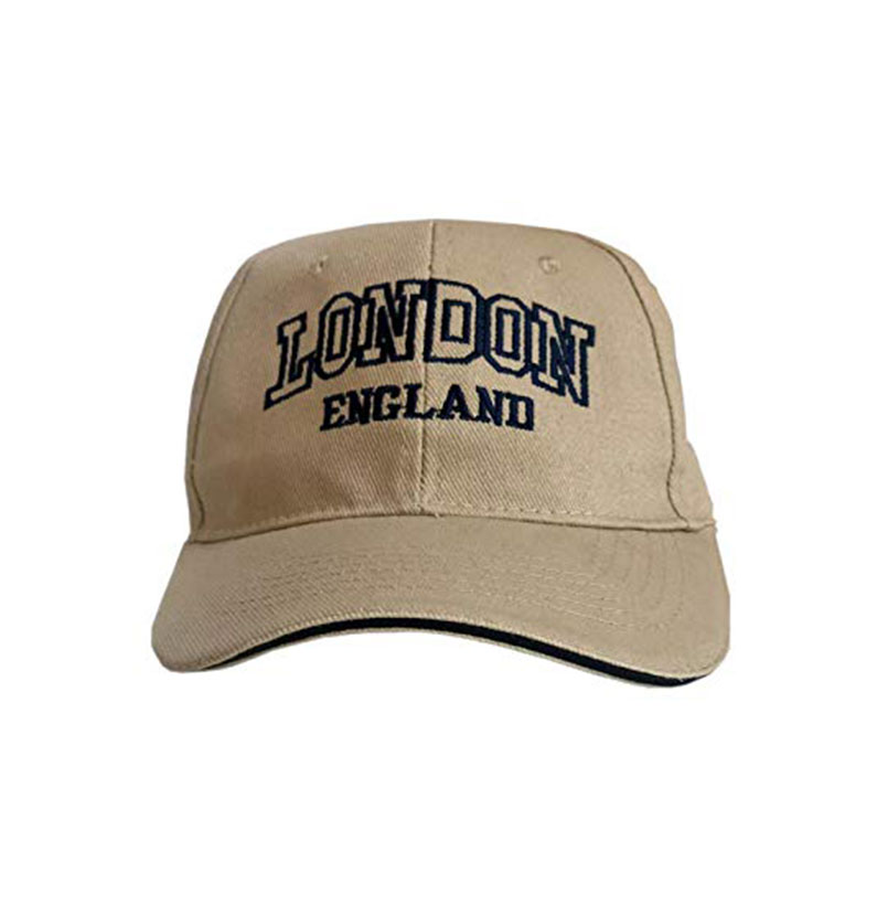 A cream baseball cap with London England embroidery work on the front. Made of 100% Cotton, Very attractive and nicely made. One size (58cm) only, and would fit to most since it has an adjustable trap at the back.