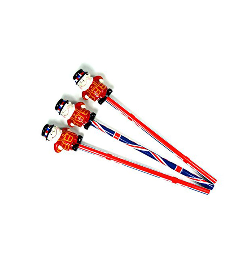 Pencils – Set of 3 Union Jack Pencils with Beefeater Toppers Made of Plastic