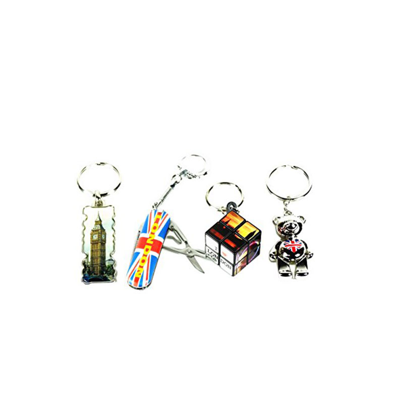 Set of four keyrings in a pack. Which include one of the London Cube Puzzel Keyring, One of the Pocket Multi-Tool Keyring, one of the London Teddy and One of the Big Ben Keyring. Best selling London Souvenir Keyring Set.