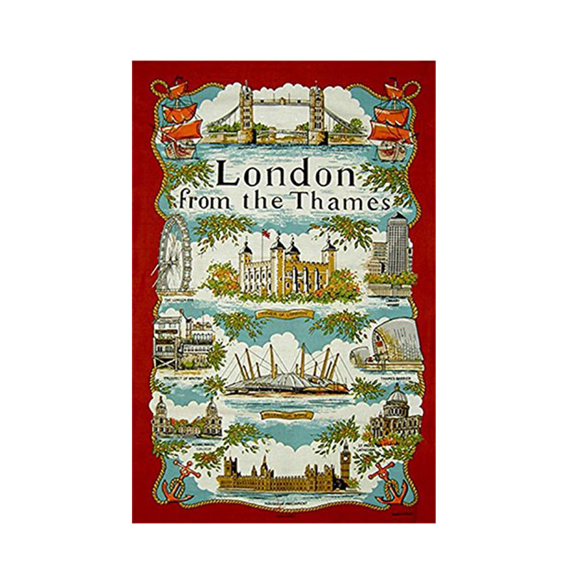 Tea Towel / Wall Hang – London From The Thames, Detaing the Landmarks by River Thames, Collectable Souvenir