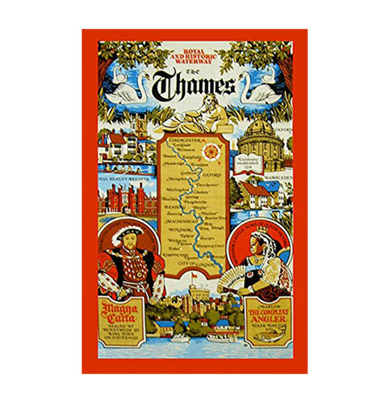 Tea Towel / Wall Hang – Royal and Historic Water way- The Thames, Detaing the Royal Landmarks by River Thames, Collectable Souvenir