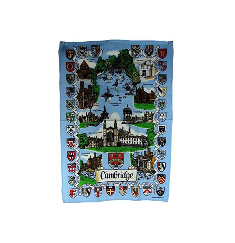 Tea Towel/Wall Hang -“Cambridge” The Shields and Scenes of Cambridge Printed Cotton Tea Towel, Souvenir of Cambridge
