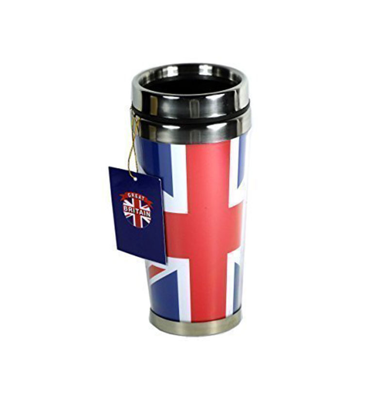 This Travel Mug got the printed insert of Union Jack all around it. One of the best selling UK souvenir Travel Mug. Beautifully Made. Please note the interior wall also plastic.