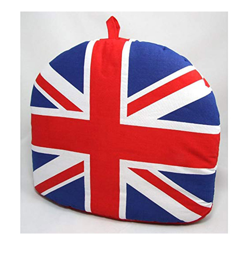 Tea cosy with Union Jack Print. Very beautiful. Value for money. 100 % Cotton withPolyester filled, complies with BS6526 1988. Approximate Length is 22, width is 22cm and height is 22 cm